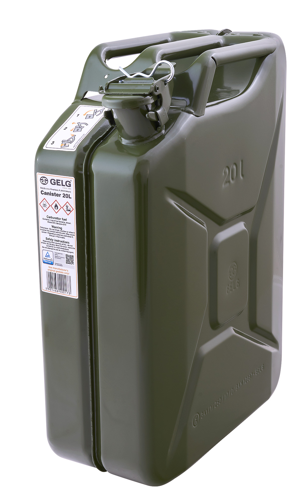 Польская фирма Gelg (Гельг) — семейная компания, которая тщательно следит за качеством изготавливаемой продукции. Все канистры из металла производятся в соответствии с международными стандартами ISO 9001: 2000, ISO 14001 и BS 18001, Имеет знак GS TUV, что говорит о безопасности и высоком качестве.