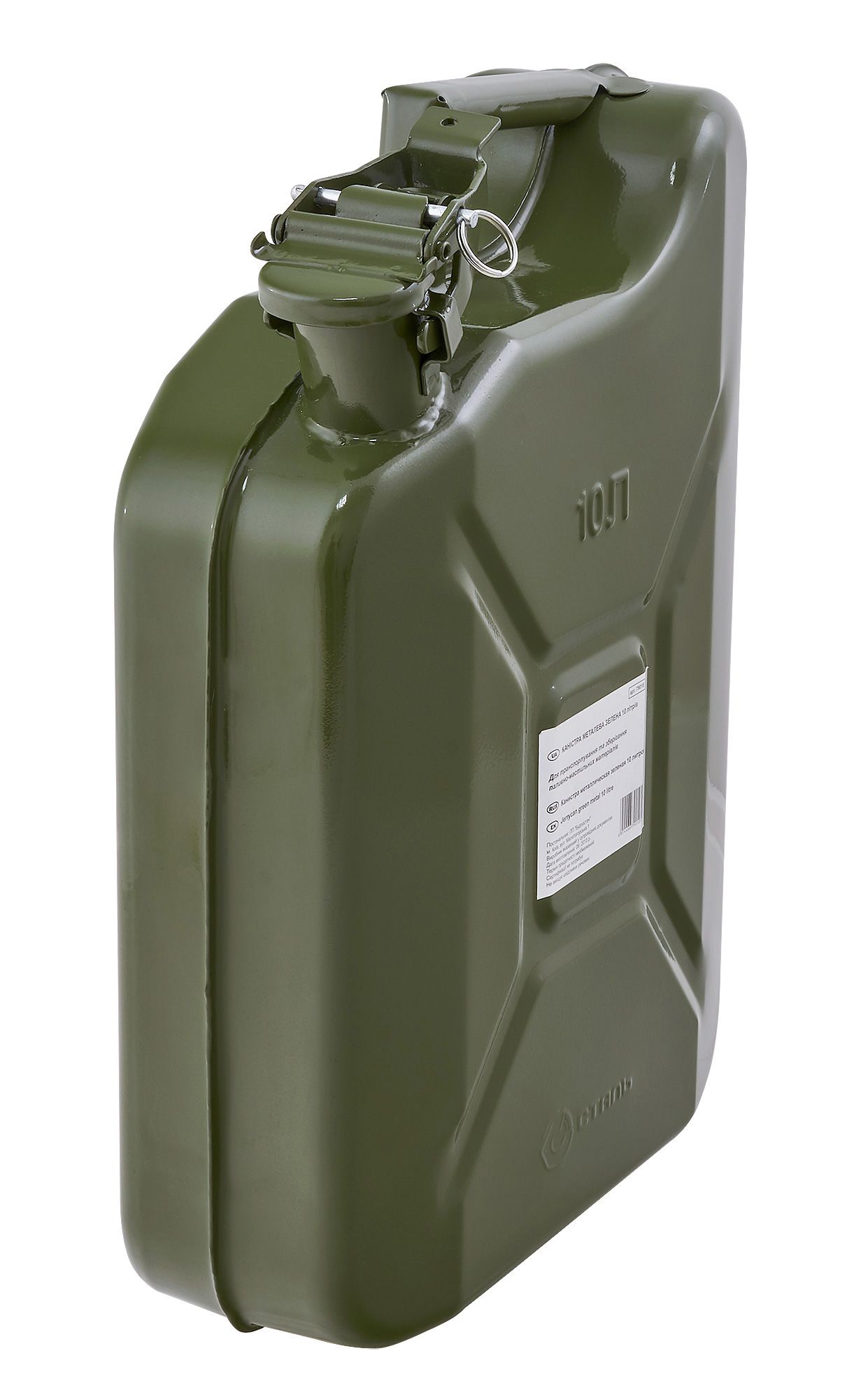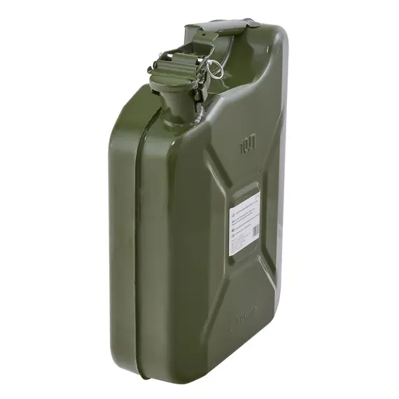 Канистра для бензина металлическая обьемом 10л, разрешена для заправки на АЗС. Предназначена для хранения бензина, солярки, масел. Канистра имеет заливную горловину, резиновый уплотнитель под крышкой, блокировочный штифт от случайного открытия, материал - сталь, порошковая покраска.