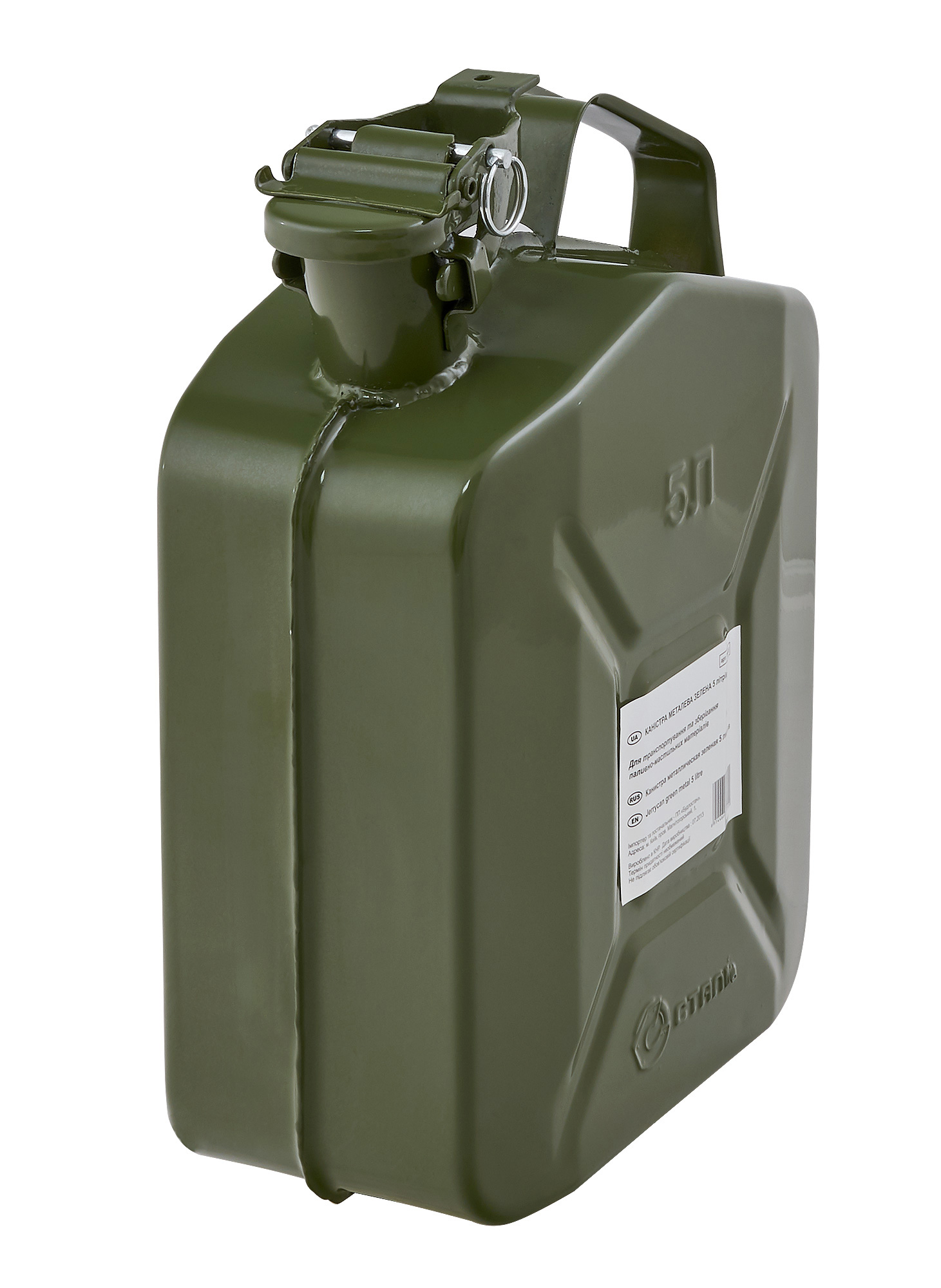 Канистра для бензина металлическая обьемом 5л, разрешена для заправки на АЗС. Предназначена для хранения бензина, солярки, масел. Канистра имеет заливную горловину 45х35мм, резиновый уплотнитель под крышкой, блокировочный штифт от случайного открытия, материал - сталь, порошковая покраска.