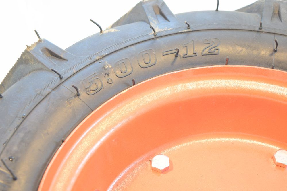 Колесо для мотоблока 5,00-12" - устанавливается на мотоблоки 135-х моделей и их аналоги, дизельные модели мощностью 9 л.с.. Резиновые шины с камерой и дисками, размером 12 дюймов.