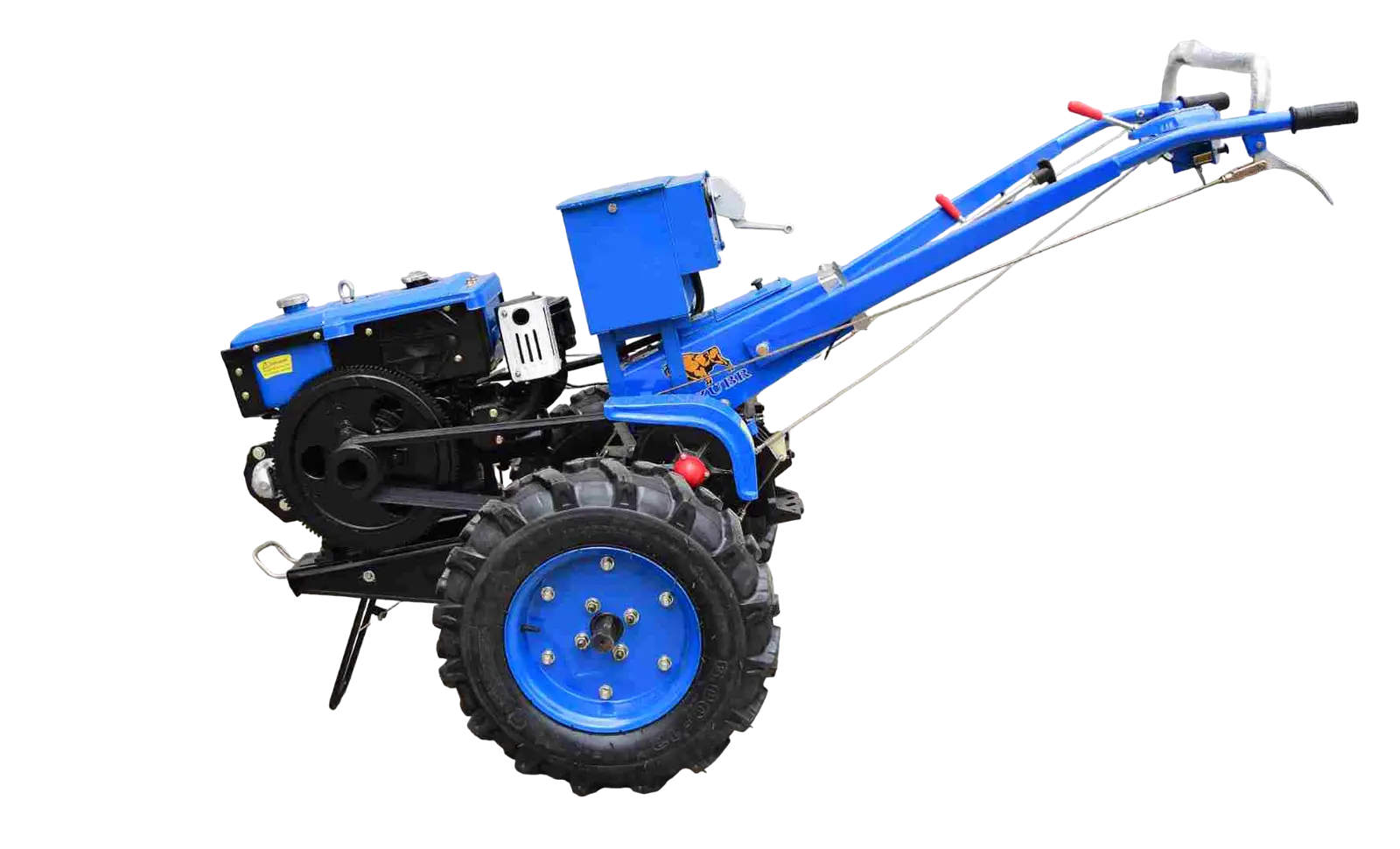 Благодаря электростартеру, запуск двигателя происходит быстро и без усилий. Двухдисковое фрикционное сцепление гарантирует плавность хода и надёжную передачу мощности. Шестерёнчатый редуктор КПП и 6 скоростей вперёд / 2 назад обеспечивают широкий диапазон рабочих режимов.