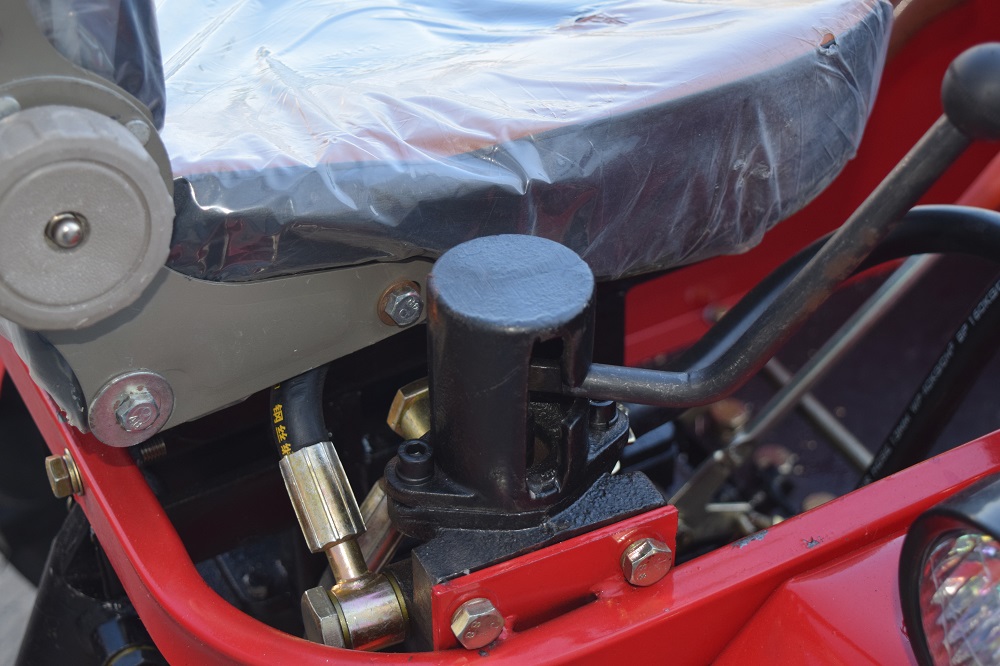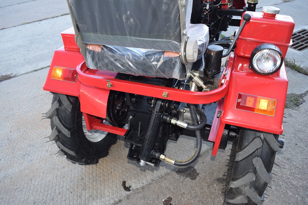 - Усовершенствованная гидравлическая система: Главная особенность модели — гидравлика с плавающим режимом. Это позволяет навесному оборудованию (фрезе) точно копировать рельеф почвы, обеспечивая равномерную глубину обработки даже на неровных участках.