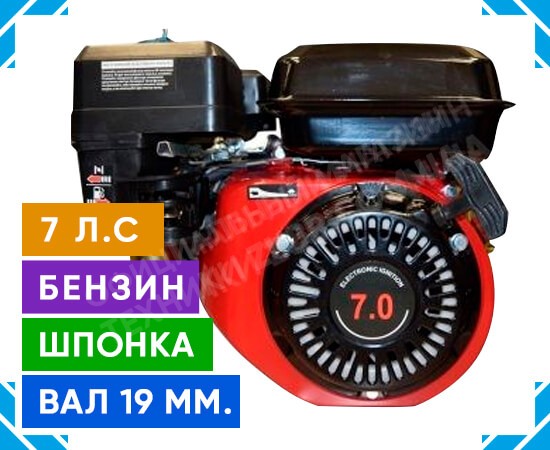 Двигун Зубр 170F-1 (бензин, 7.0 к.с., вал 19 мм, шпонка)