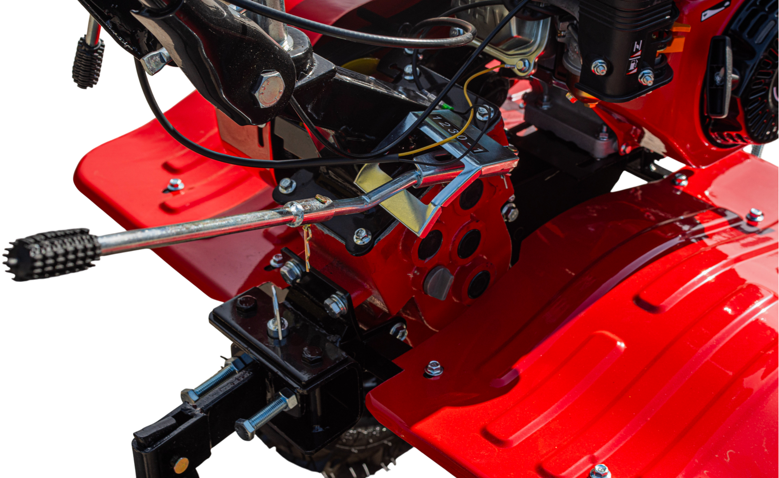 Завдяки коничному шестеренчастому редуктору, мокрому багатодисковому зчепленню та прямій передачі, модель демонструє високу ефективність і довговічність. Трансмісія з 3 передачами вперед та 1 назад дозволяє легко адаптувати роботу до умов ґрунту, а вал відбору потужності (ВОМ) дає можливість підключати навісне обладнання.