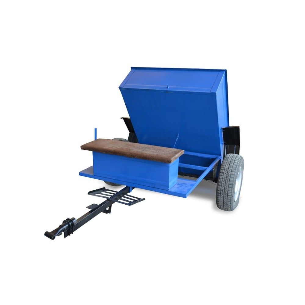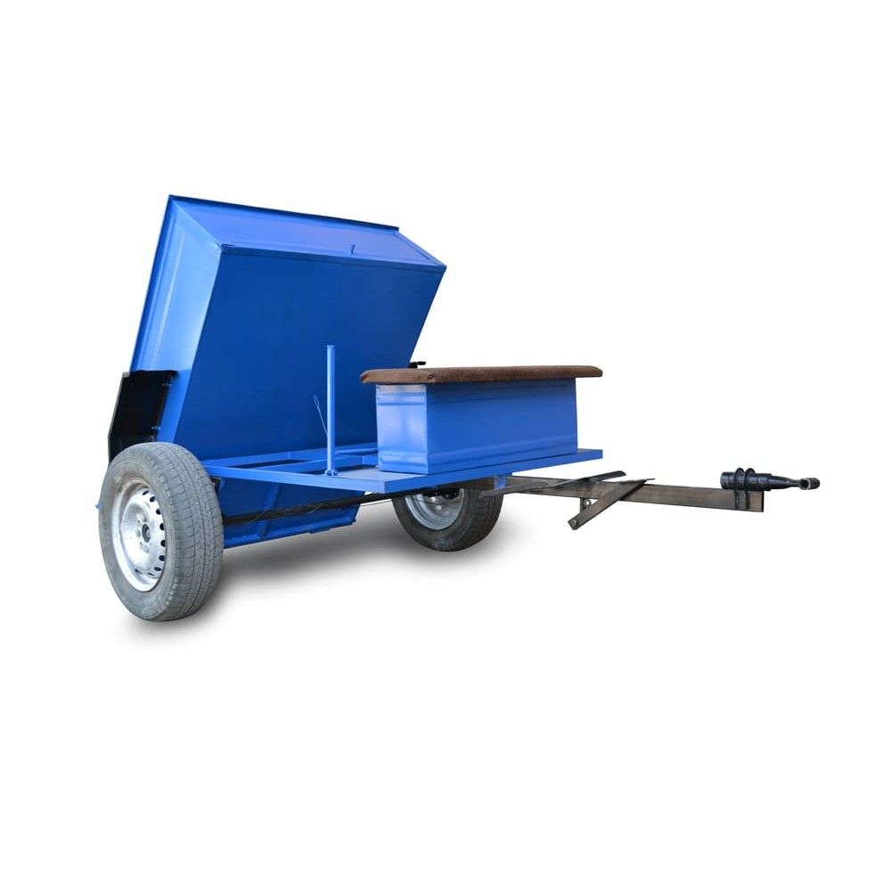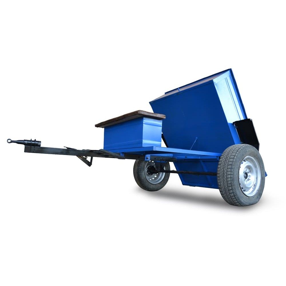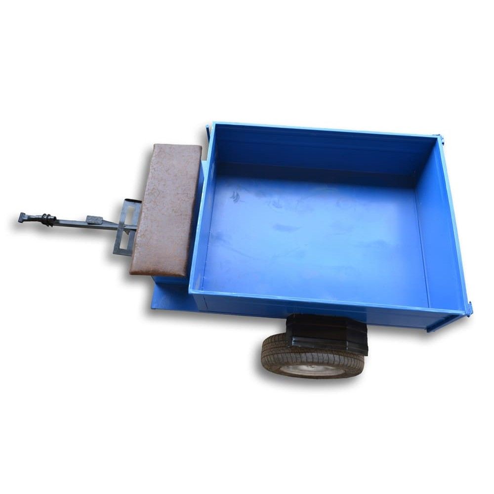 Прицеп к мотоблоку - кузов 1150Х1400мм, максимальная грузоподъемность 600 кг самосвал, оборудован ленточными тормозами, инструментальным ящиком, без колес со ступицей под колеса «Таврия», «Жигули».